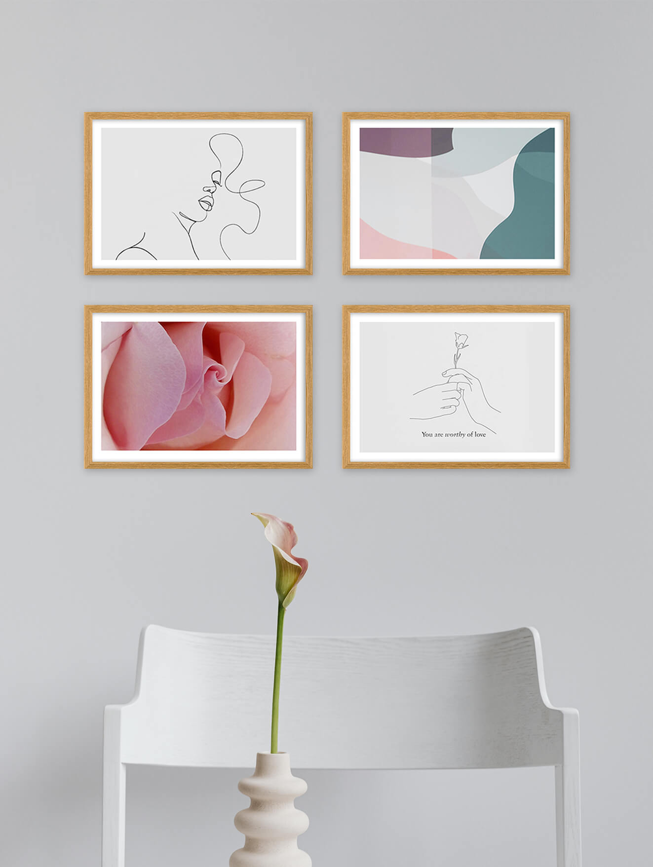 Nowoczesne galerie ścienne to prosty i efektowny sposób na aranżację każdego wnętrza. Dekoracyjny produkt pozwala stworzyć niebanalną kompozycję składającą się z 4 sztuk ramek. Wszystkie ramki zostały wykonane w 100% z drewna wysokiej jakości, dzięki czemu są trwałe i solidne.