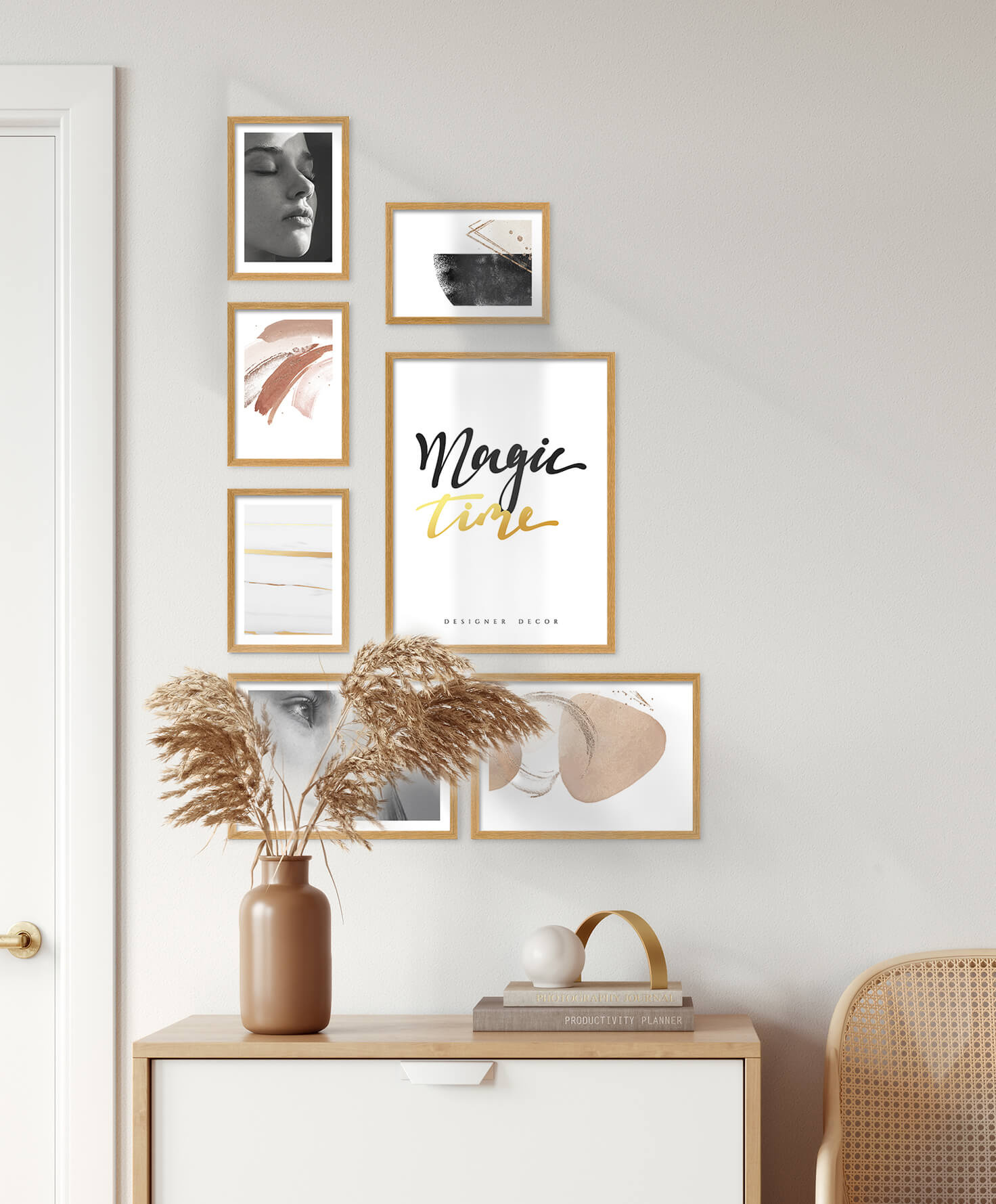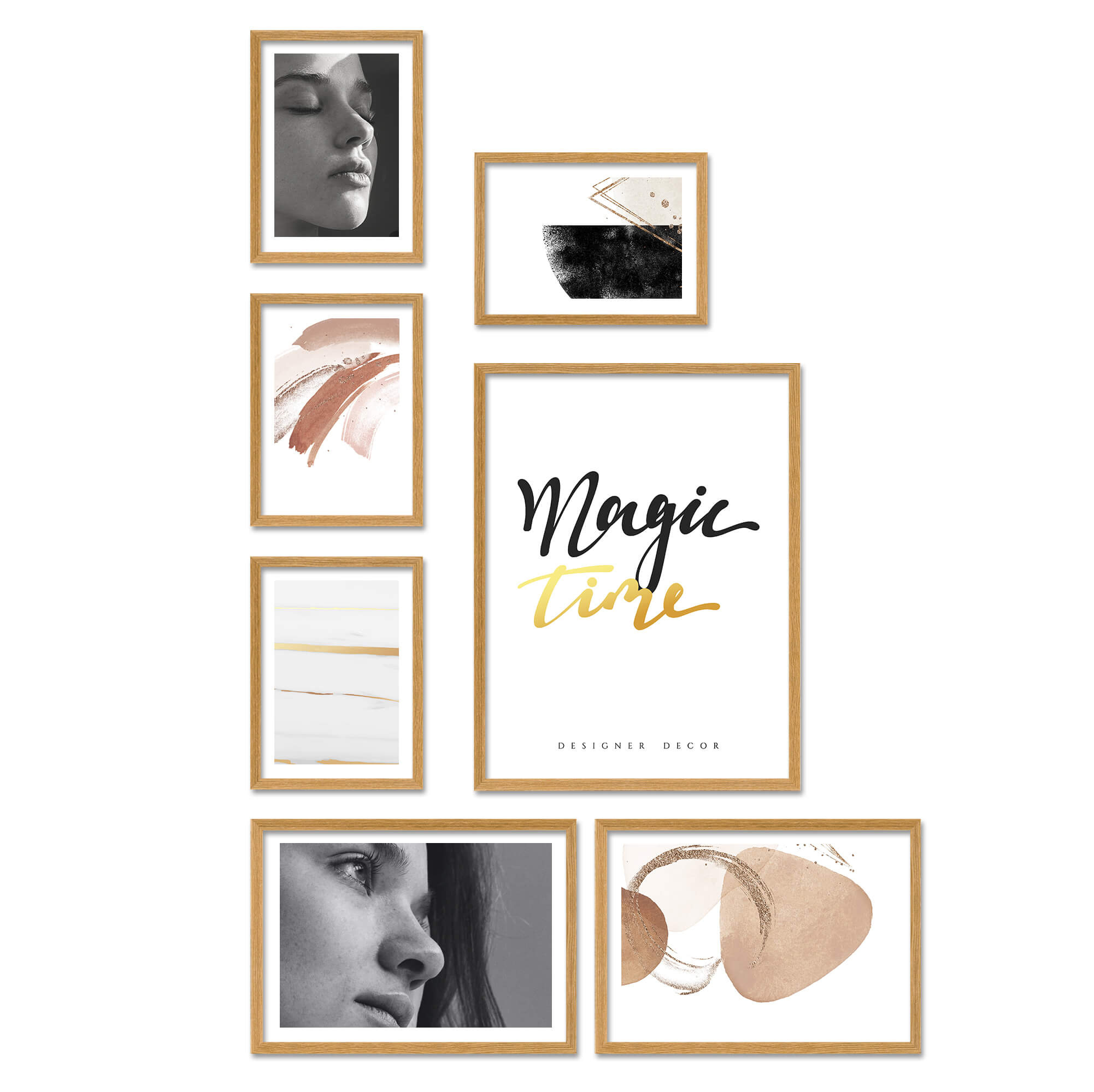 Nowoczesne galerie ścienne to prosty i efektowny sposób na aranżację każdego wnętrza. Dekoracyjny produkt pozwala stworzyć niebanalną kompozycję składającą się z 7 sztuk ramek. Wszystkie ramki zostały wykonane w 100% z drewna wysokiej jakości, dzięki czemu są trwałe i solidne.