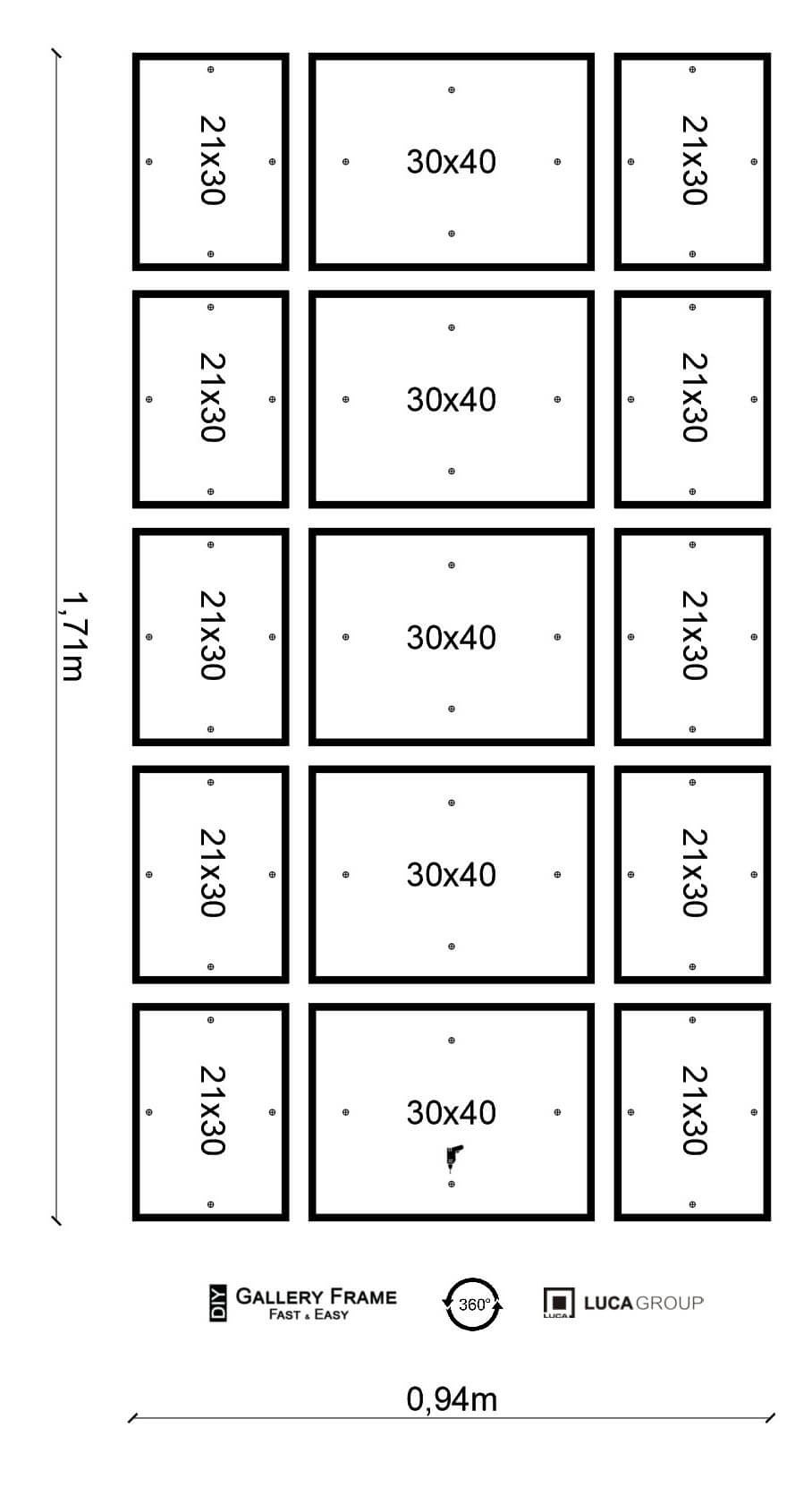 Prezentowane szablony galerii ściennych DIY Gallery FrameTM są własnością LUCA GROUP i podlegają ochronie prawnej. Kopiowanie, powielanie i rozpowszechnianie bez pisemnej zgody jest zabronione.