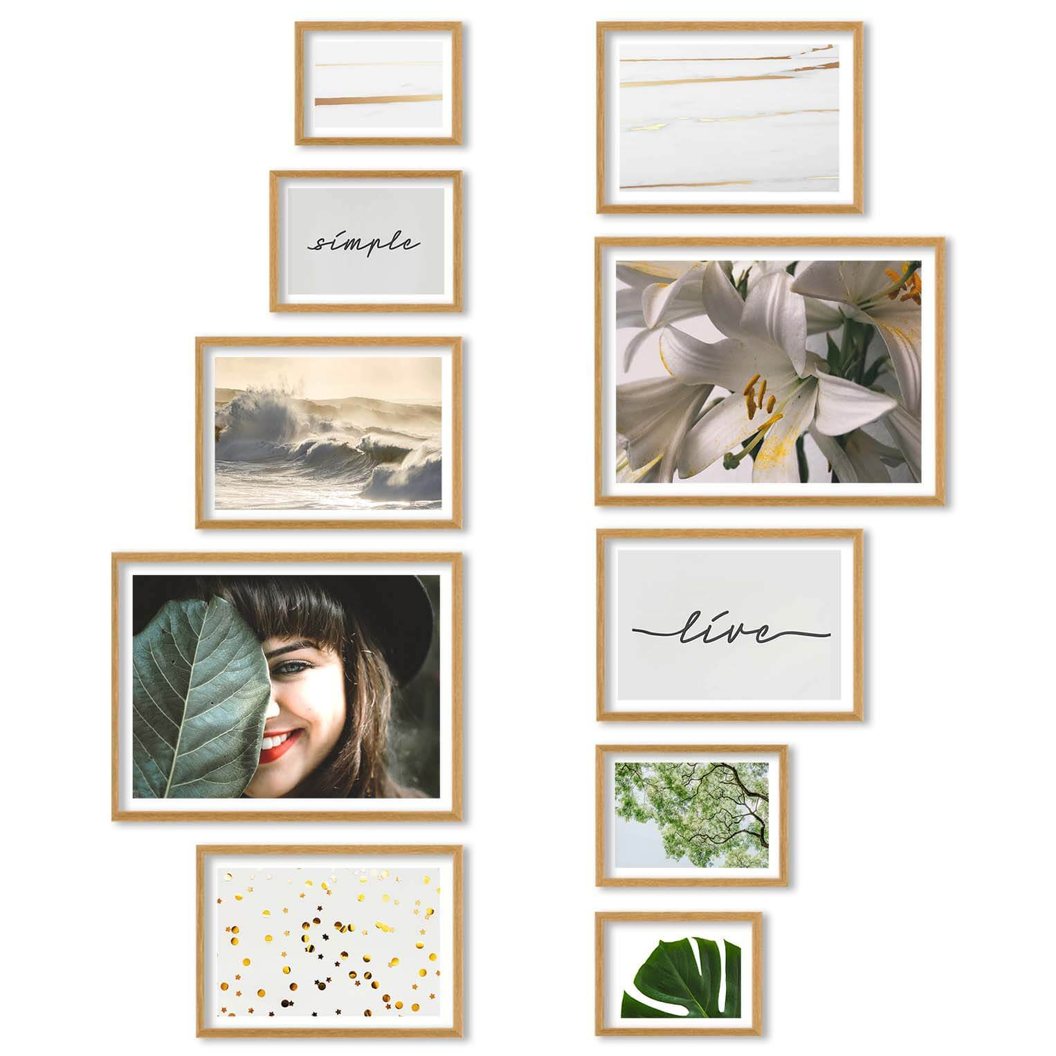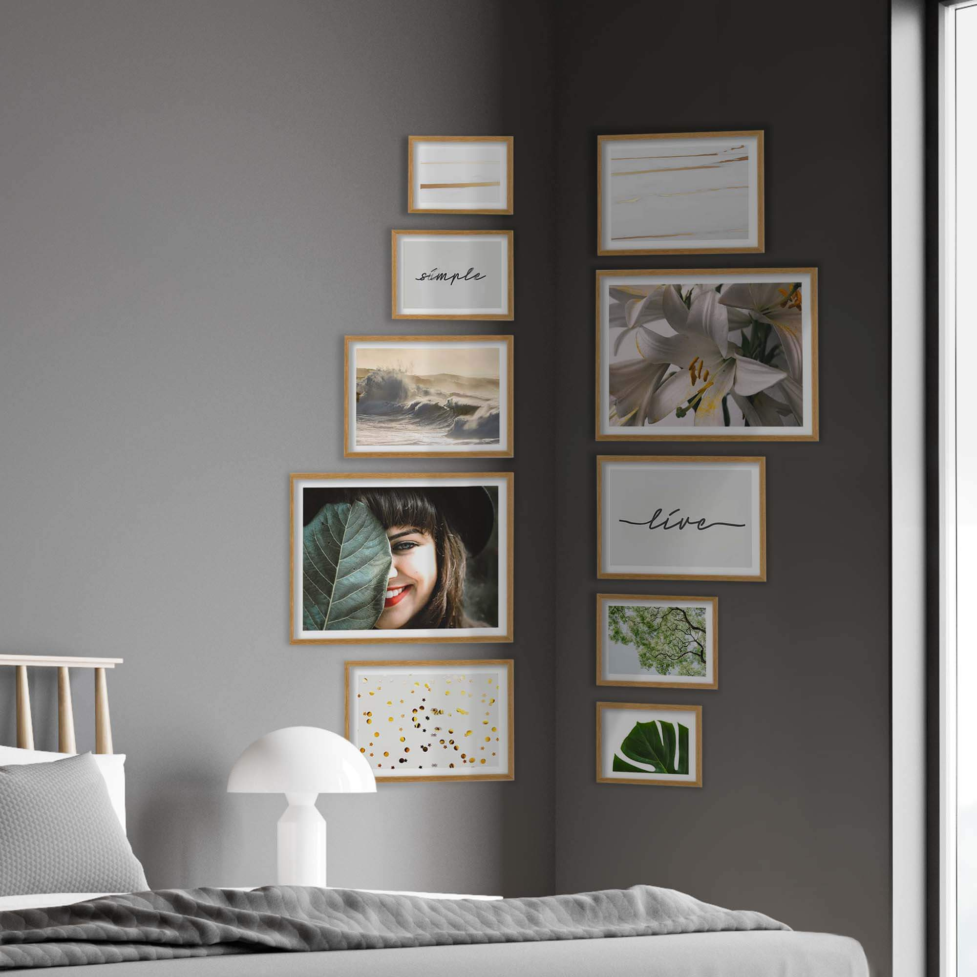 Nowoczesne galerie ścienne to prosty i efektowny sposób na aranżację każdego wnętrza. Dekoracyjny produkt pozwala stworzyć niebanalną kompozycję składającą się z 10 sztuk ramek. Wszystkie ramki zostały wykonane w 100% z drewna wysokiej jakości, dzięki czemu są trwałe i solidne.