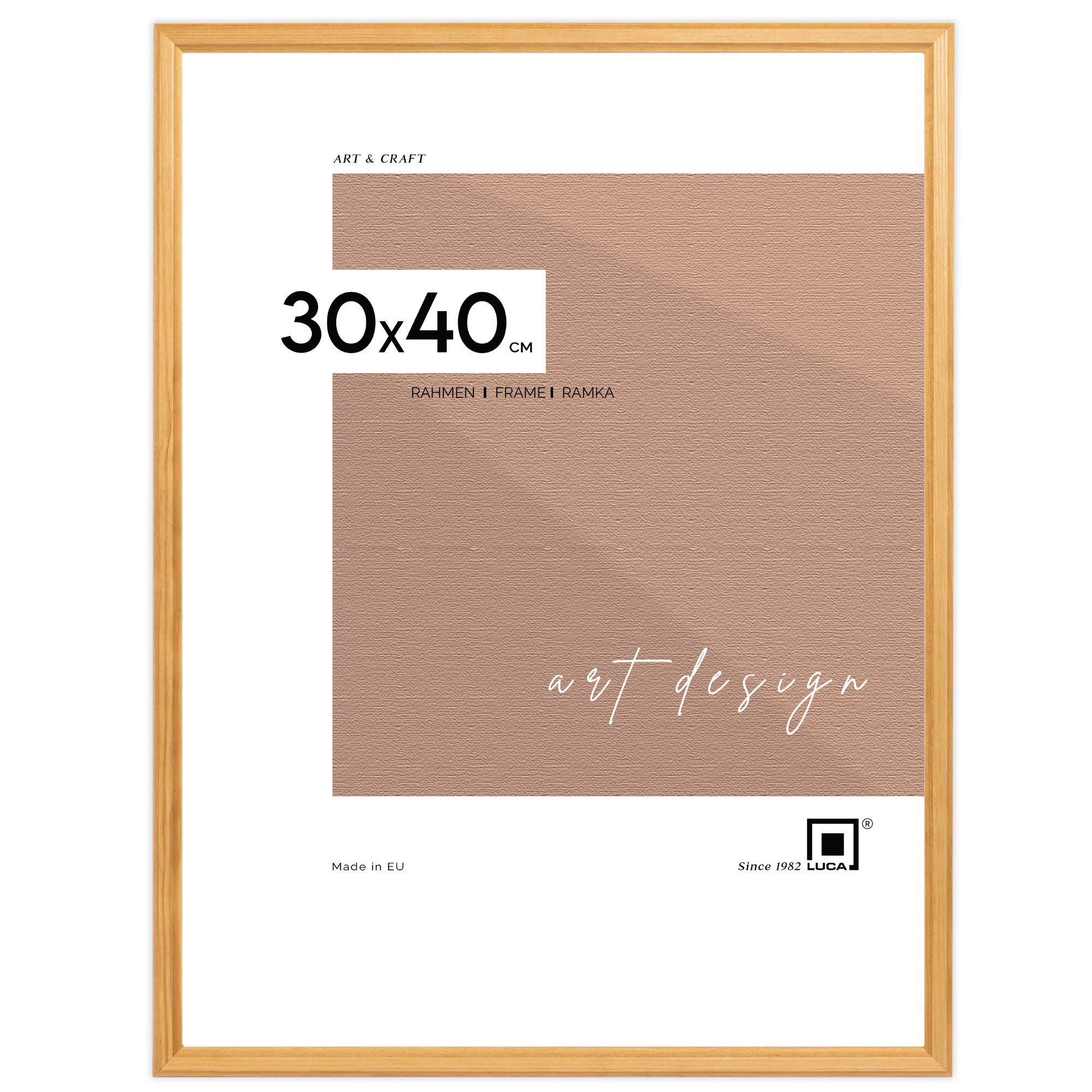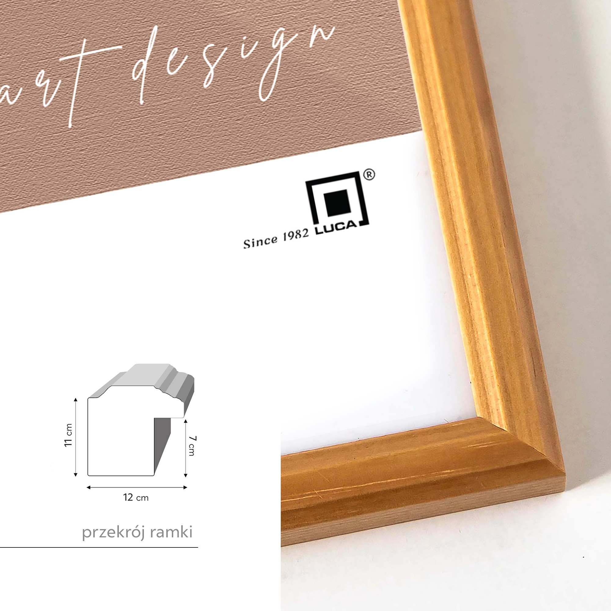 Galeria GF0003 w kolorze sosnowym (jasne drewno) została stworzona z ramek PRESTO 0, które charakteryzują się wysoką jakością i trwałością. Przy tworzeniu ich użyto wysokiej jakości drewna i trwałych zszywek "V-nail" przy łączeniach. Profil ramek to 12 mm szerokości i 11 mm wysokości. Miękkie blaszki mocujące tył ramki zapewniają możliwość wielokrotnego otwierania.