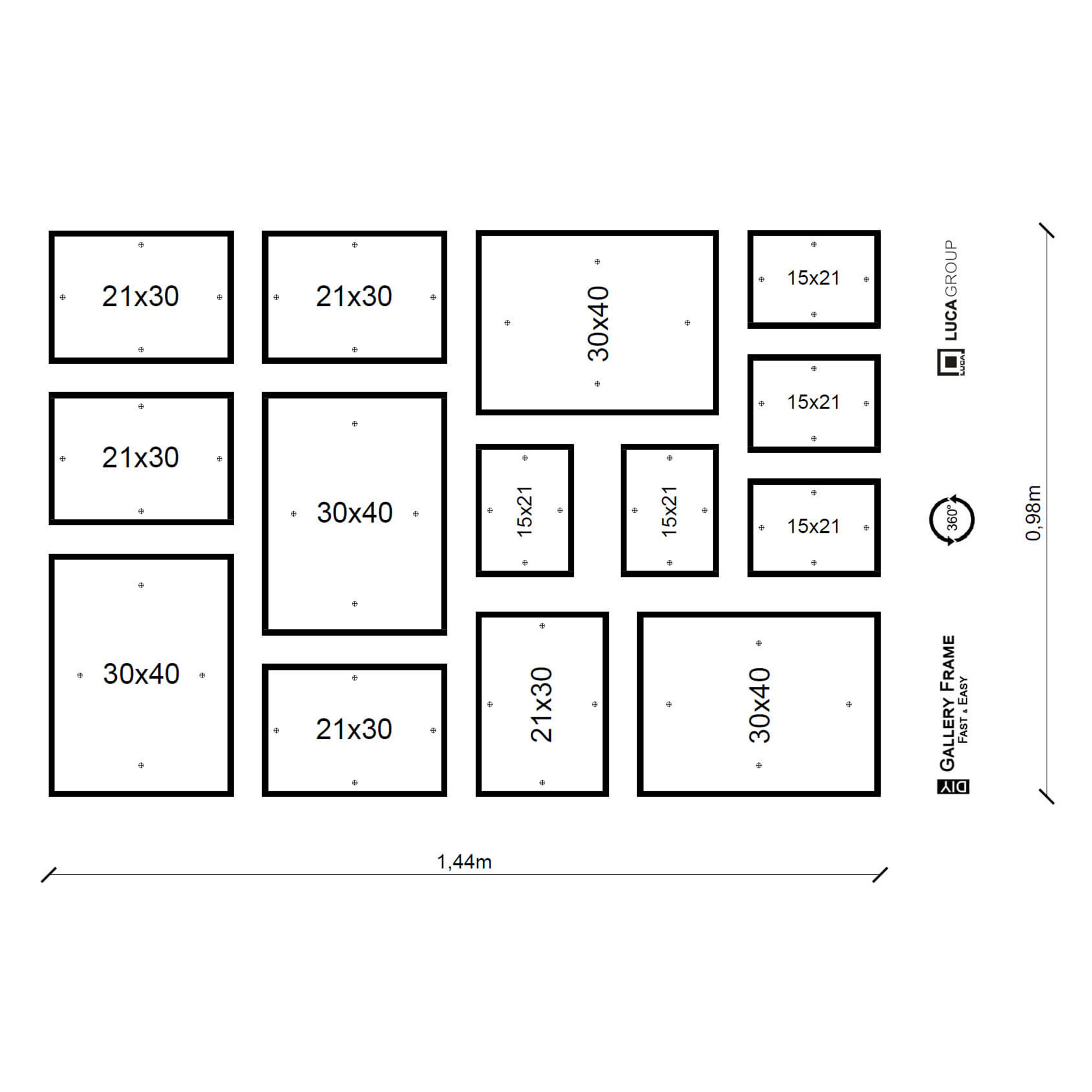 Prezentowane szablony galerii ściennych DIY Gallery FrameTM są własnością LUCA GROUP i podlegają ochronie prawnej. Kopiowanie, powielanie i rozpowszechnianie bez pisemnej zgody jest zabronione.