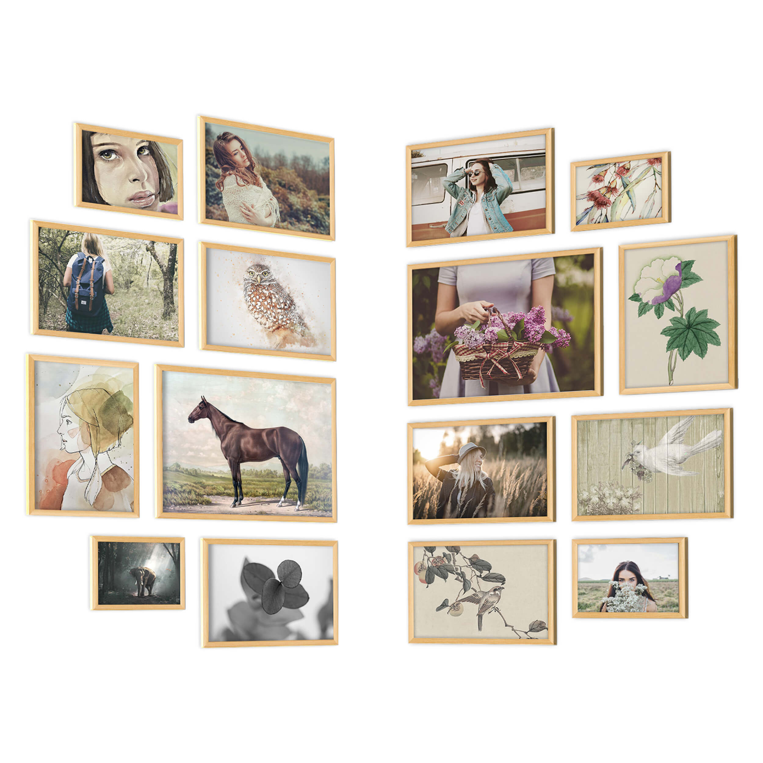 Galeria GF0009 CORNER w kolorze jasnego drewna została stworzona z ramek HIT 0, które charakteryzują się wysoką jakością i trwałością. Przy tworzeniu ich użyto wysokiej jakości drewna i trwałych zszywek "V-nail" przy łączeniach. Profil ramek to 13 mm szerokości i 12 mm wysokości. Miękkie blaszki mocujące tył ramki zapewniają możliwość wielokrotnego otwierania.