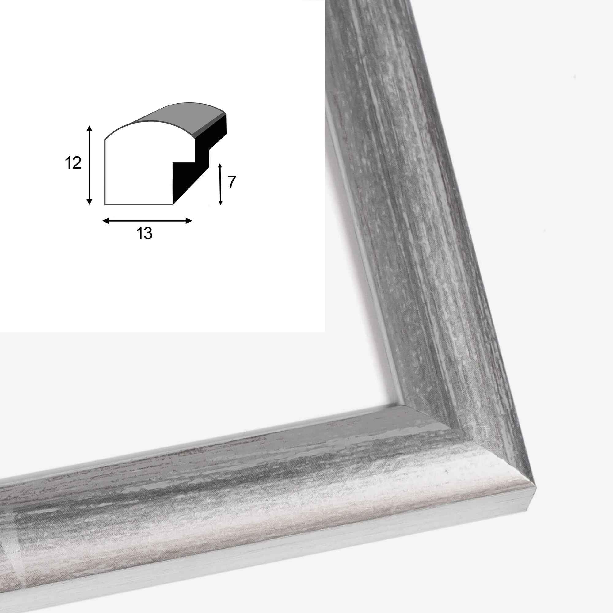 Galeria GF0001 w kolorze srebrnym została stworzona z ramek HIT 1 S charakteryzującą się wysoką jakością i trwałością. Przy tworzeniu ich użyto wysokiej jakości drewna i trwałych zszywek "V-nail" przy łączeniach. Profil ramek to 13 mm szerokości i 12 mm wysokości. Miękkie blaszki mocujące tył ramki zapewniają możliwość wielokrotnego otwierania.