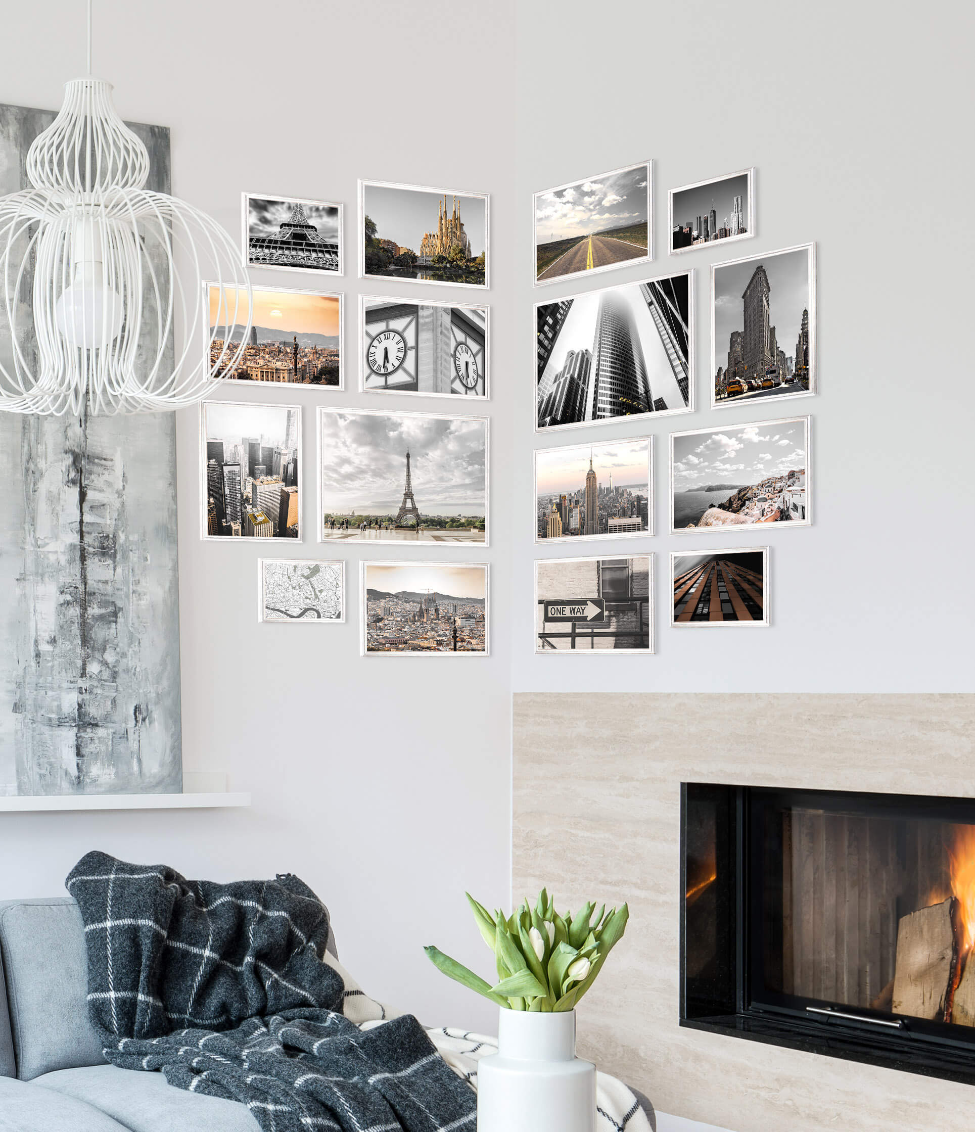 Nasze autorskie galerie ścienne DIY Gallery FrameTM zostały zaprojektowane we współpracy z artystami i grafikami. Możesz zaprezentować w nich Twoje ulubione zdjęcia, rysunki jak i grafiki. W zestawie znajdziesz wszystkie potrzebne elementy takie jak ramki, szablon w skali 1:1 na ścianę, komplet montażowy z wkrętami oraz intuicyjną instrukcję!